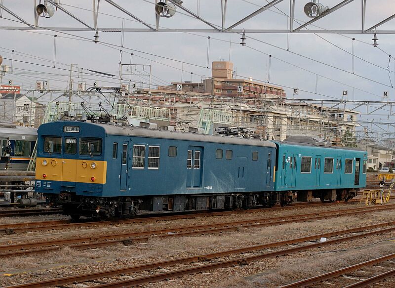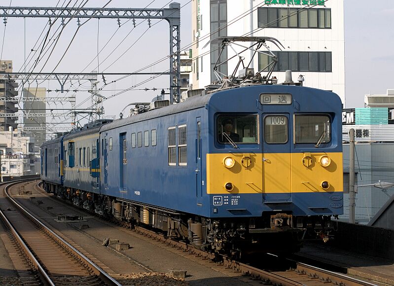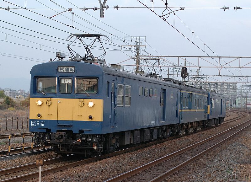 クエ9401 + クモヤ22001 + クモハ73084 1980.12.17(水) 山陽本線 明石電車区