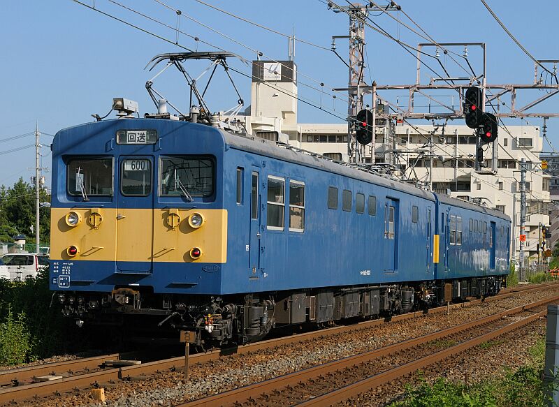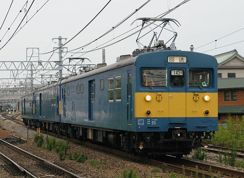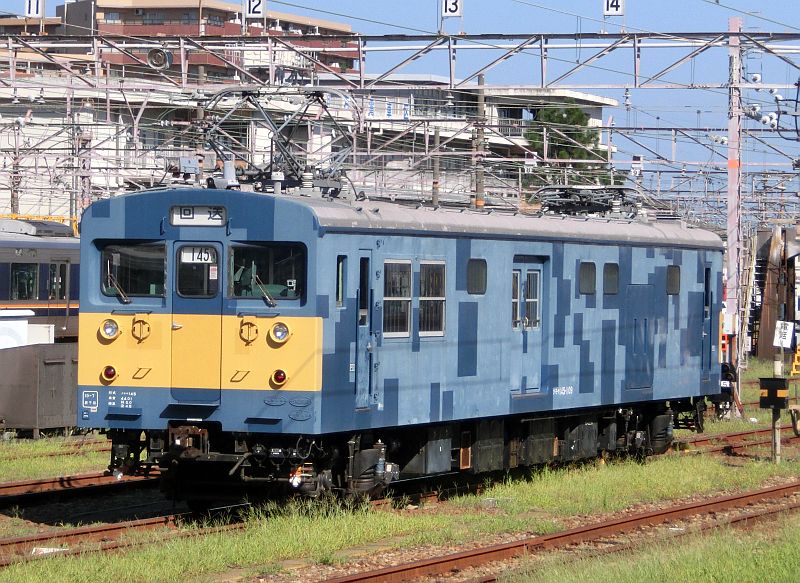 見事なパッチワーク塗装… クモヤ145−1109 2012.8.2(木) JR神戸線 西明石〜明石(近アカ:元明石電車区)